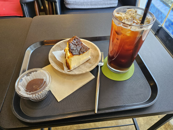 사진은 너무 일찍도착해서(엄마가 태워다주느라) 카페서 먹은 아메리카노(디카페인), 바스크 치즈케이크, 두쫀쿠입니다